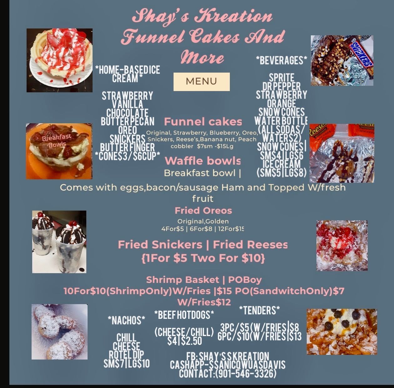 Here at Shay’s Funnel Cakes &and More We're the best in our field, and it's all thanks to the incredible relationships we've formed with ping a personal connection with each and every one of our customers, by providing quality services. All Orders are made To order Online! Can’t wait to serve you!